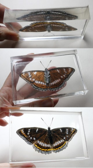 Nähtyäni Riusuke Fukahorin hartsikerrosten väliin maalattuja kultakaloja, tiesin heti että tätä tekniikkaa on päästävä kokeilemaan. Onnistuin hankkimaan puolitoista litraa tätä erittäin kirkkaaksi kovettuvaa hartsia. Talvilämpötiloissa hartsi kovettuu kolmessa päivässä tavanomaisen vuorokauden sisään, mutta alhainen ilmankosteus auttaa pitämään valun kirkkaana. Tämä hartsi kutistuu vain hyvin vähän ja valetun kappaleen saaminen irti muotista oli kova työ. Valun kerrokset erottuvat sivulta katsottuna, mutta eivät päältäpäin.